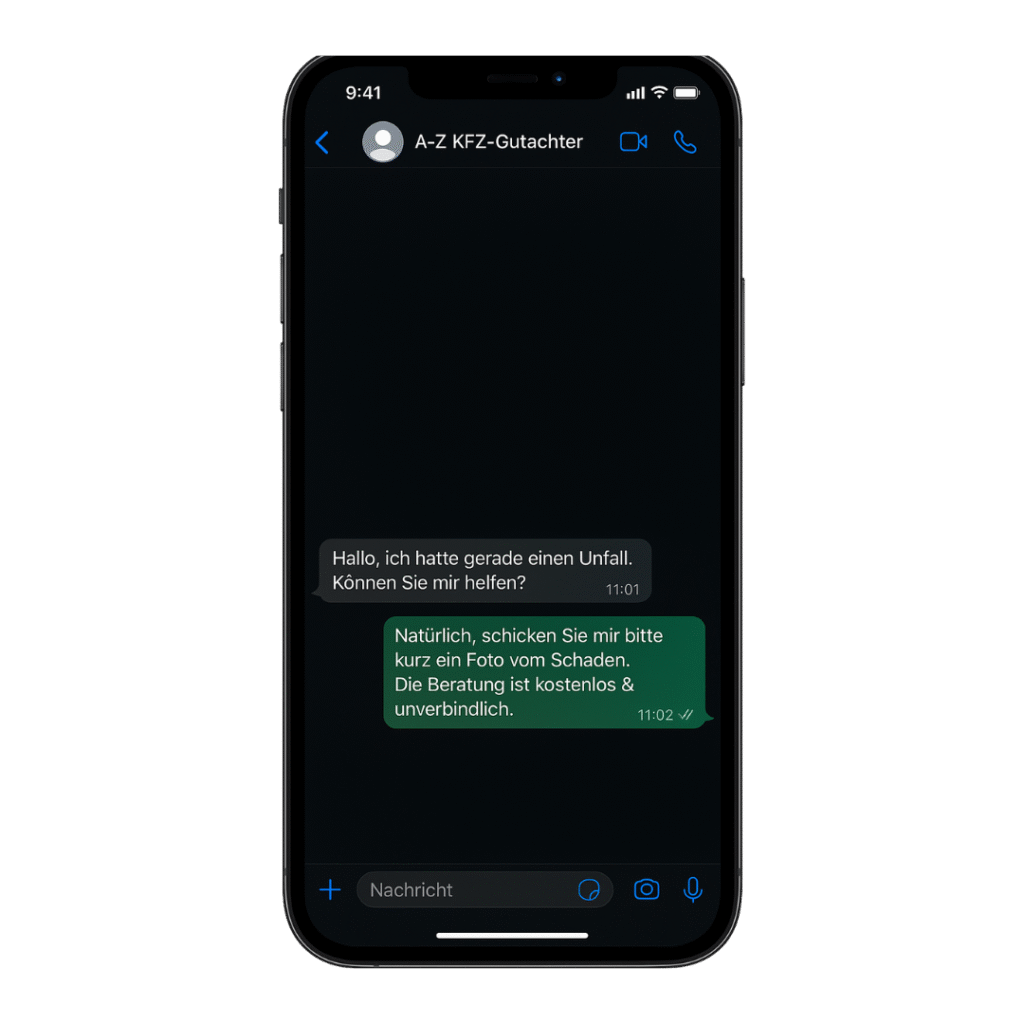 Unfall per WhatsApp melden & unverbindlich beraten lassen